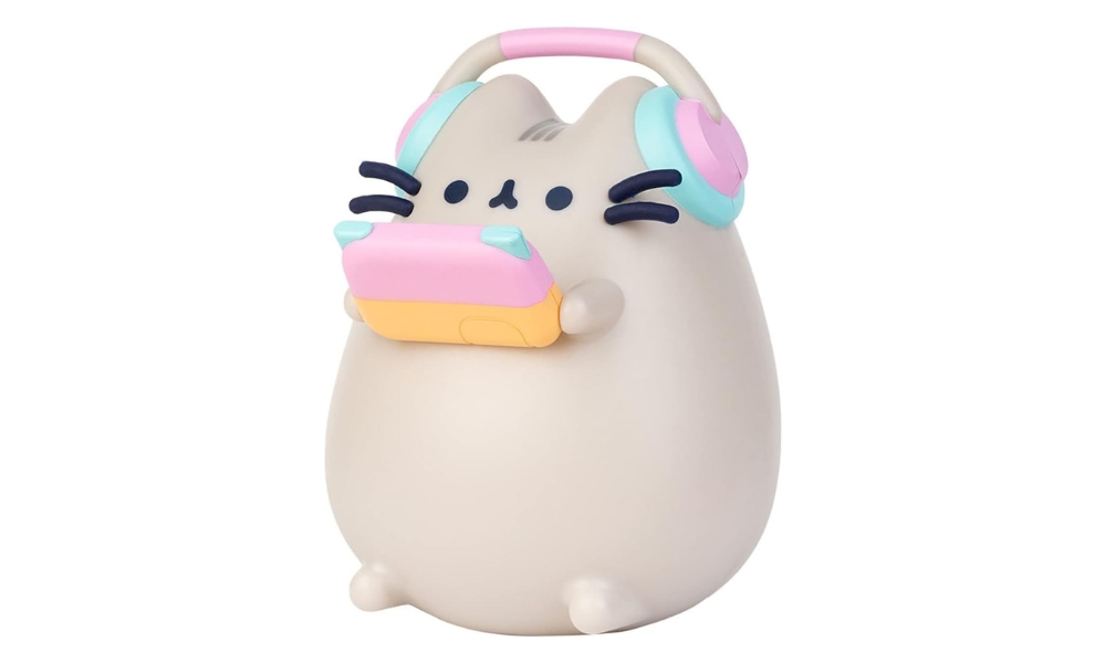 La lámpara Grupo Erik Pusheen Gamer Lamp representa al popular gato atigrado gris con auriculares y un mando en la mano. La lámpara mide 6,3 pulgadas de ancho por 4,3 pulgadas de alto y está fabricada en PVC. La iluminación LED proporciona una cálida iluminación ambiental adecuada para las luces nocturnas, pero insuficiente para la lectura o el trabajo.