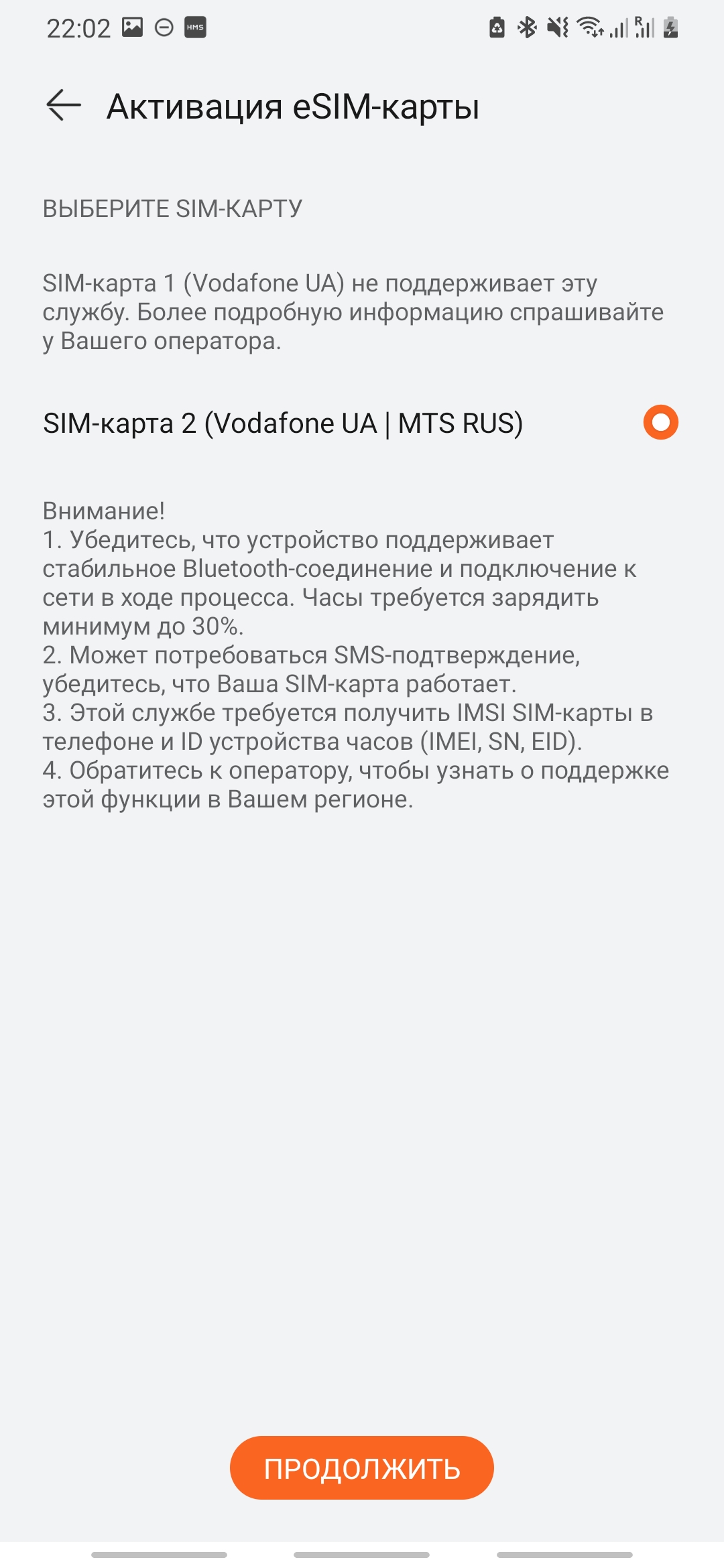 Soporte de eSIM. El reloj puede recibir llamadas, etc. sin teléfono, al mismo número. La conexión es muy intuitiva, pero sólo funciona con tarjetas SIM que admitan esta función. En Ucrania, todavía no hay soporte para la tecnología que permite copiar el número para eSIM. En otros países donde lo hay, el servicio tiene que conectarse a través del operador.
