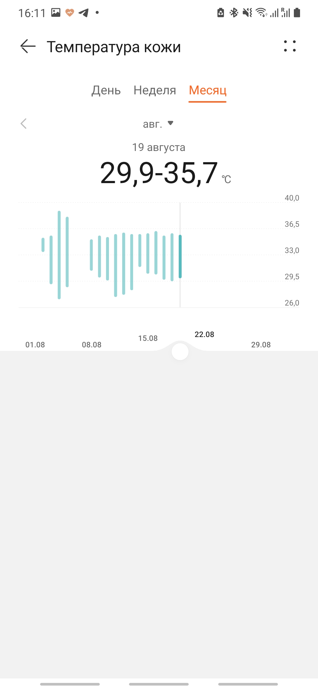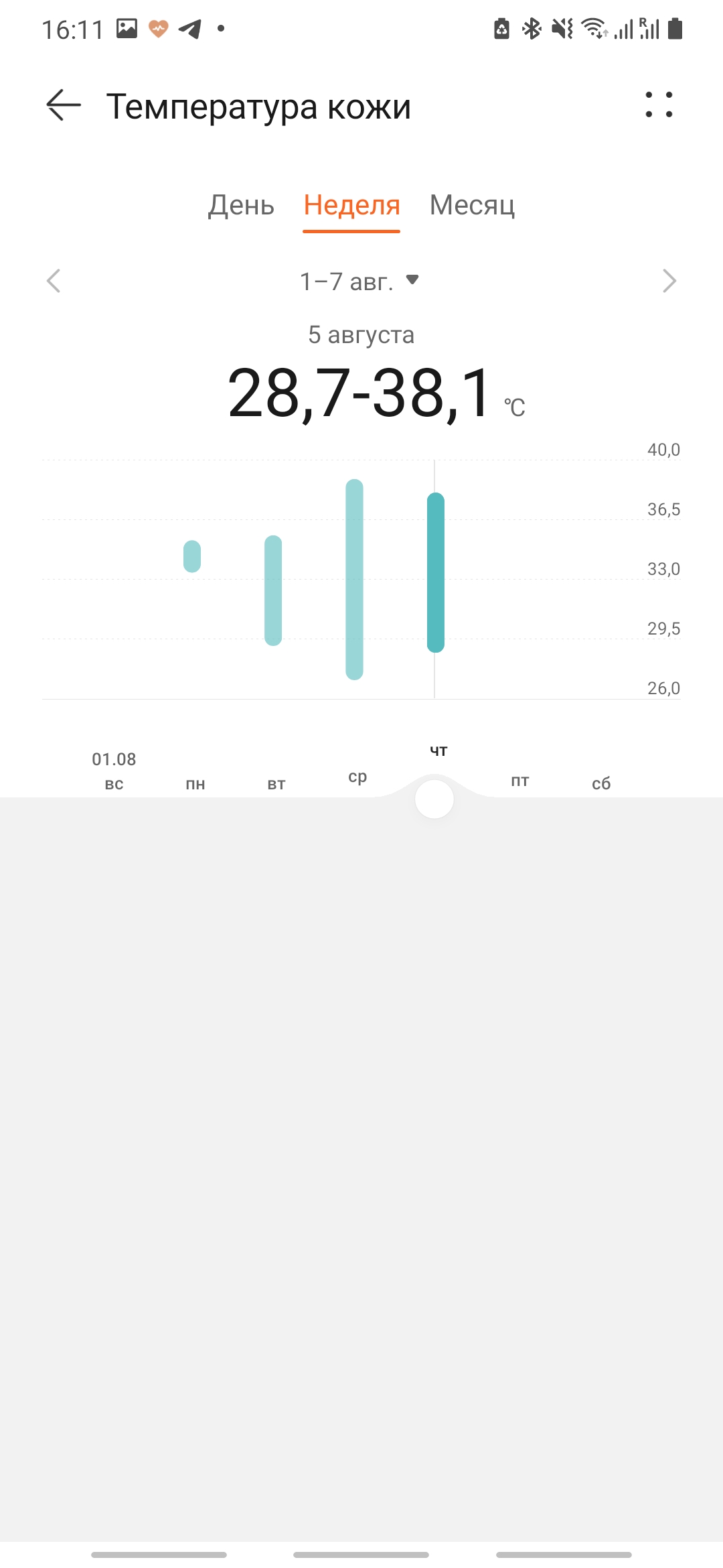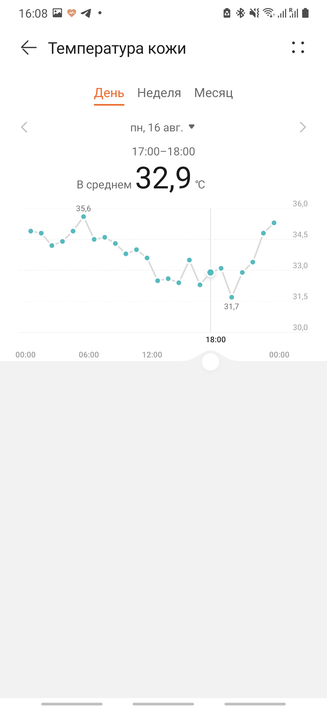 Hay otro hecho curioso del que se ha hablado sobre todo a raíz de la epidemia de coronavirus. La persona tiene una temperatura elevada por la noche durante unos días antes de que aparezcan los síntomas, ya que el cuerpo lucha contra el virus. Así que, en el proceso de probar el reloj, cogí una infección respiratoria aguda, pero mirando los gráficos, no hay manera de saberlo.