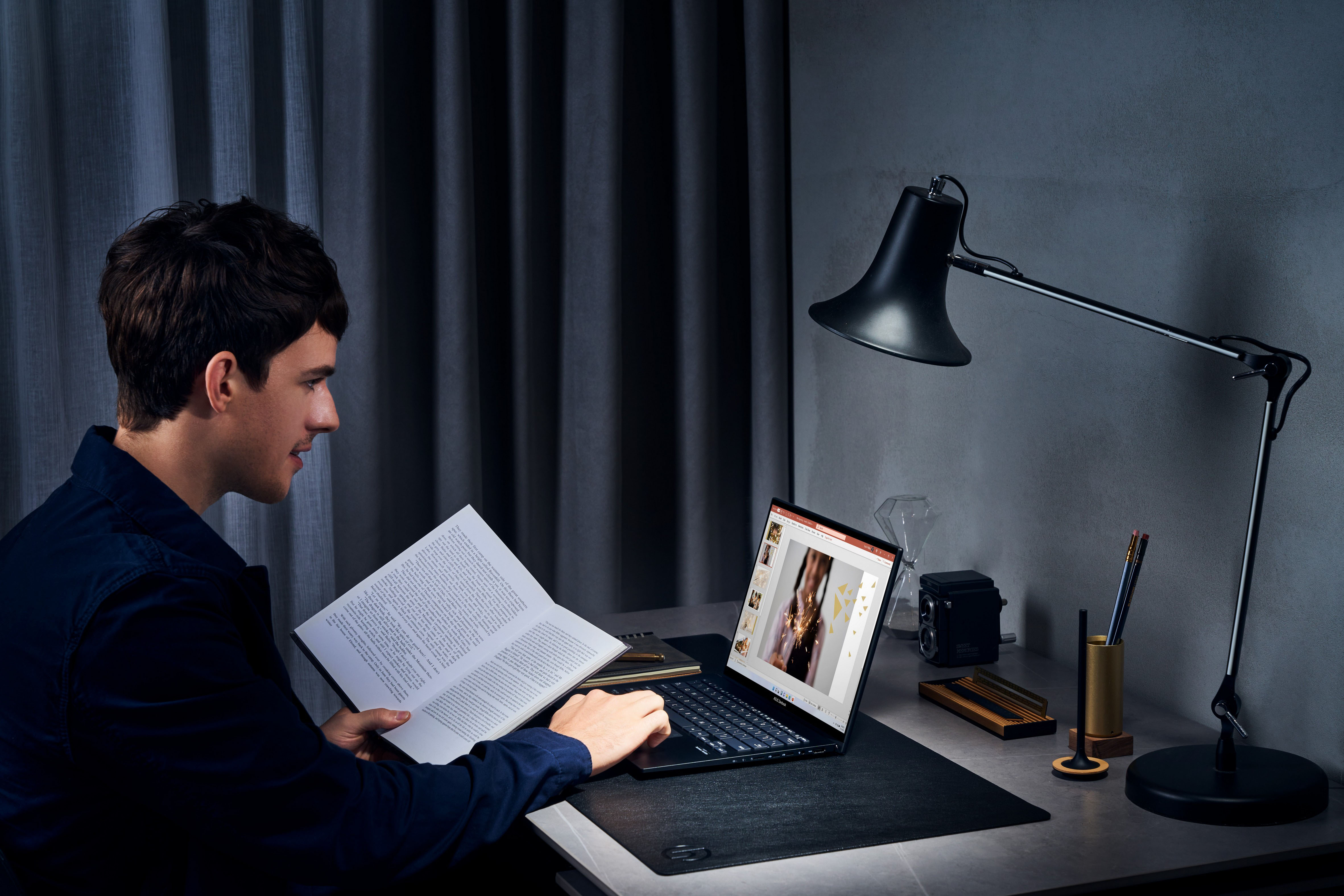 Comencemos con la primera computadora portátil del mundo equipada con una pantalla OLED plegable de 17,3 ”. Tiene una resolución de 2.5K y cuando se pliega ofrece dos pantallas Full HD de 12.5 ”sin bisel en el medio. La pantalla cuenta con certificación PANTONE y TÜV Rheinland, cobertura 100% DCI-P3 y compatibilidad con Dolby Vision HDR.