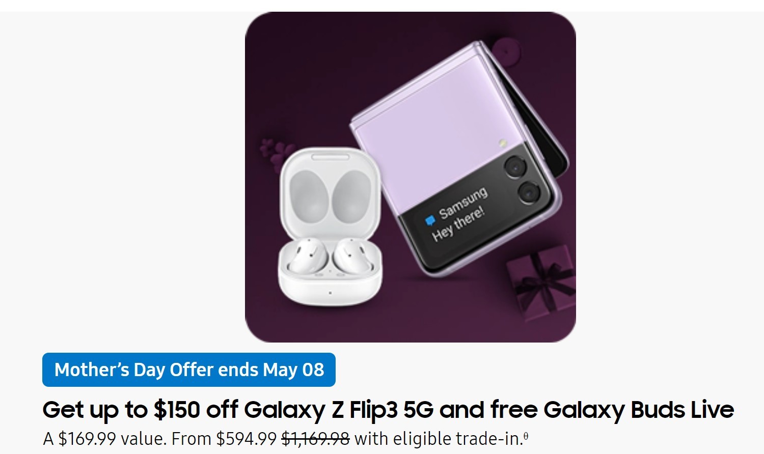 Si tu madre prefiere algo elegante, el Galaxy Z Flip3 Bespoke Edition está disponible con $150 de crédito instantáneo de Samsung, un par de Galaxy Buds Live gratis y $50 de crédito de Google Play. Las versiones regulares de Z Flip3 obtienen $ 100 de crédito de Samsung. De cualquier manera, puede complementar la compra con hasta $305 de crédito de intercambio, lo que reducirá el precio a $595.