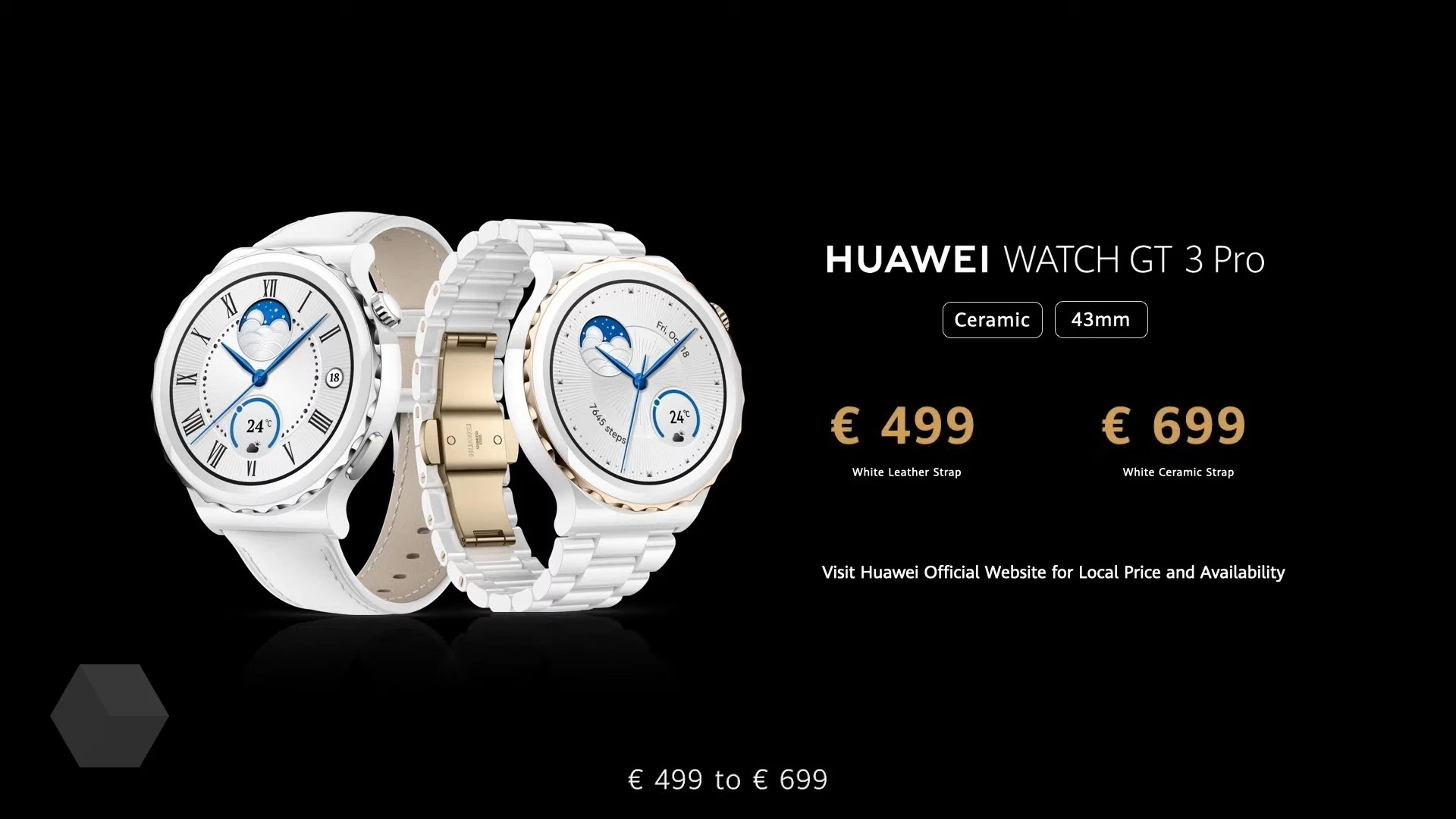 La novedad más cara es el reloj inteligente Huawei Watch GT 3 Pro en una modificación con caja de cerámica y la misma correa. El reloj cuesta 699 €. La opción de correa de cuero te ahorra 200 €. La versión Titanium se ofrece en tres variantes: con correa de silicona para 369€, con cuero por 389€ y con titanio por 499€.