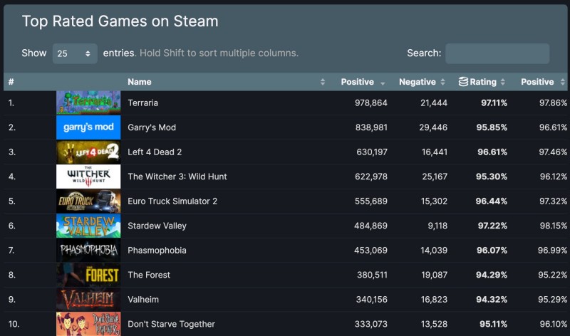 Terraria, el principal competidor de Minecraft y sólo un juego sandbox en 2D, se ha convertido en el primer juego de Steam con una valoración superior al 97%.