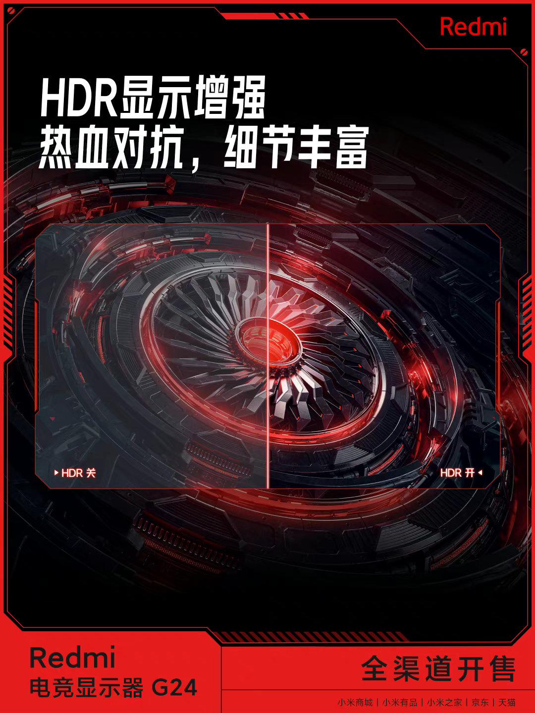 La novedad se llamó Redmi Gaming Monitor G24. El dispositivo está equipado con una pantalla LCD con una diagonal de 23,8 pulgadas. El panel tiene una resolución de 1920×1080 (FHD), una relación de aspecto de 16:9, una tasa de refresco de 165 Hz, así como soporte para colores de 8 bits. El contraste de la pantalla es de 3500:1. El monitor tiene un tiempo de respuesta de 1 ms, soporte para HDR10, así como Nvidia G-Sync y AMD FreeSync. Estos mejoran la suavidad de la imagen en los juegos. Viene con puertos HDMI y DisplayPort.