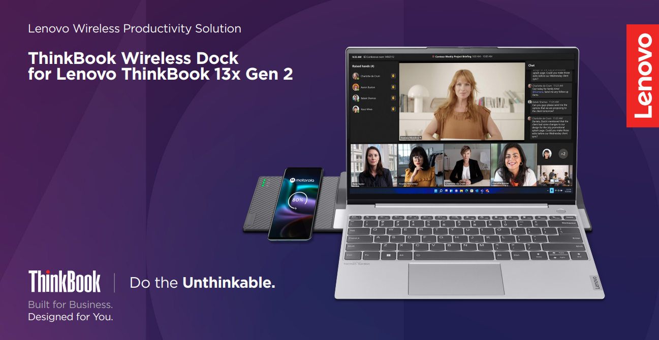 La tercera novedad de la serie se llama Lenovo ThinkBook 13x Gen 2. Se conecta al ThinkBook Wireless Dock, que aumenta significativamente el conjunto de interfaces. Se puede utilizar para conectar dos monitores y cargar gadgets, incluso de forma inalámbrica a través del estándar Qi (10 vatios).