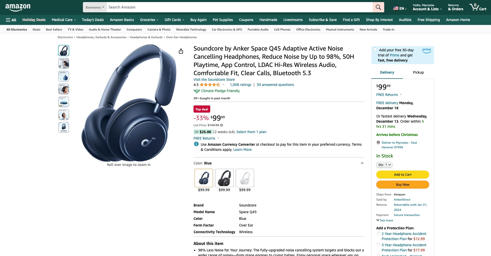 Soundcore by Anker Space Q45 con ANC, compatibilidad con LDAC y hasta 50 horas de autonomía está disponible en Amazon con un descuento de 50 dólares