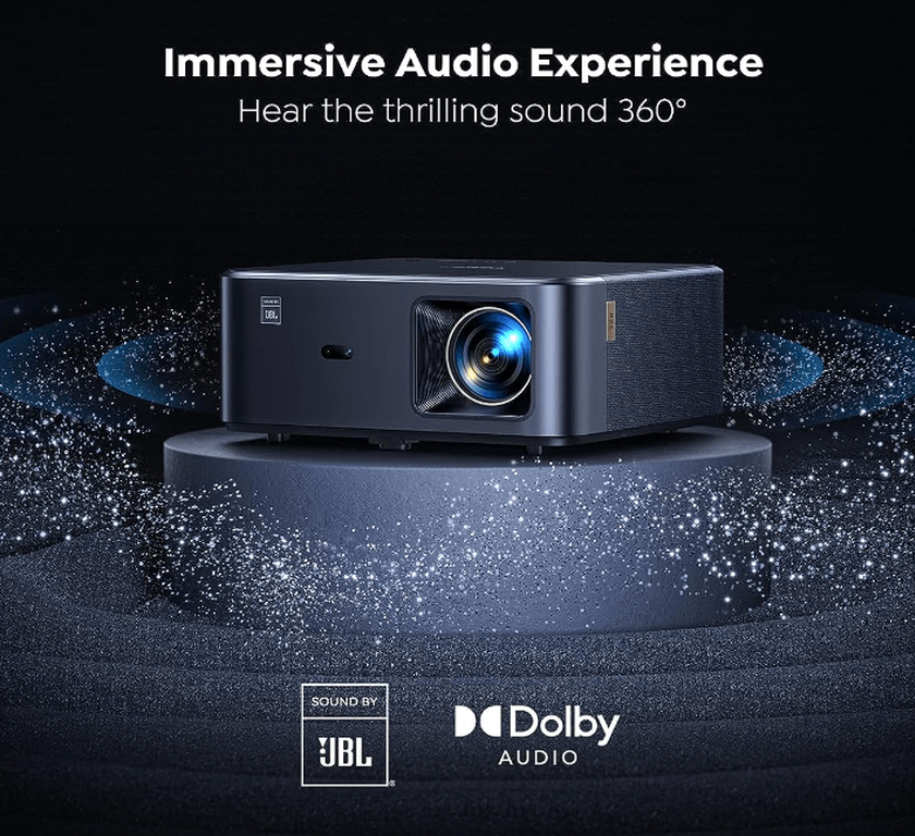 La calidad de audio también es un punto destacado, ya que el proyector cuenta con altavoces estéreo duales integrados y un sistema de sonido SRS. La incorporación de Bluetooth 5.0 permite la conexión con auriculares Bluetooth, altavoces y Airpods. Además, su avanzado sistema de refrigeración garantiza un funcionamiento silencioso y prolonga la vida útil de la lámpara hasta 100.000 horas.
