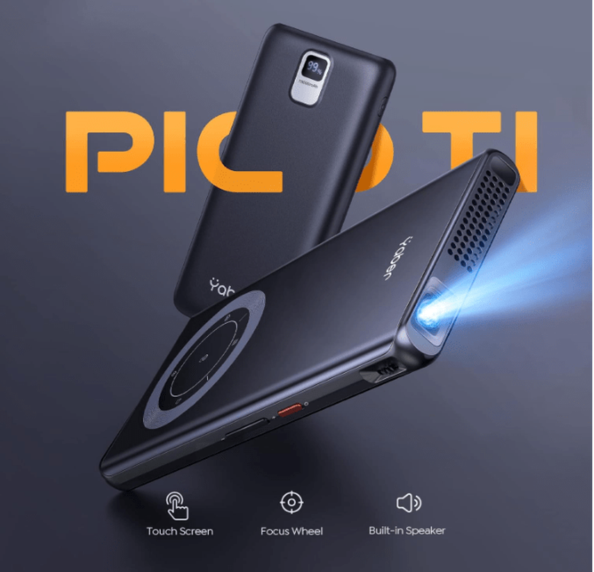 Una característica única del Pico T1 es su banco de energía integrado, que permite a los usuarios proyectar en cualquier lugar sin necesidad de una fuente de alimentación. Su tecnología de pantalla DLP garantiza colores vivos e imágenes nítidas. El proyector cuenta con una resolución nativa de 960 x 540P, superior a la de muchos otros miniproyectores, y admite HD 1080P y una relación de contraste de 3000:1. Esta combinación ofrece una imagen de mayor definición con colores más vivos, con un brillo nativo de 110 ANSI lúmenes.