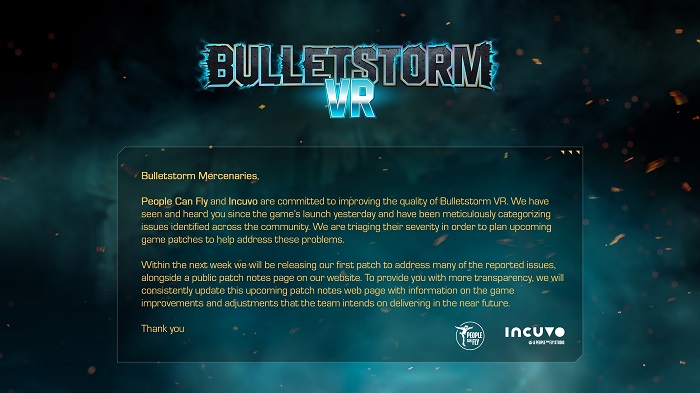 Por su parte, People Can Fly publicó un tuit en el que aseguraba que han escuchado todos los comentarios y deseos de los jugadores y que lanzarán un parche importante la semana que viene, que no será el último.