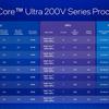 Intel afirma que los nuevos procesadores ofrecen el "núcleo de CPU más rápido" y el "mejor rendimiento para IA", y en comparación con competidores como Qualcomm y AMD, los Core Ultra 200V ofrecerán hasta un 50% menos de consumo de energía y hasta 120 TOPS en CPU y GPU. Se espera que los dispositivos basados en Core Ultra 200V funcionen hasta 20 horas sin necesidad de recarga.