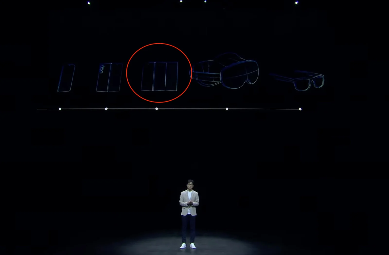 La compañía no reveló ningún detalle sobre este singular dispositivo, limitándose a referirse a él como "multi-fold". Sin embargo, se mostró una imagen en la gran pantalla que confirmó inequívocamente que Samsung está desarrollando un smartphone plegable por tres lados.