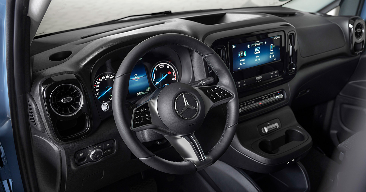 Al igual que la eVito Tourer, la furgoneta eVito incluye de serie el sistema multimedia MBUX con pantalla central de 10,25 pulgadas, pantalla en color de 5,5 pulgadas en el cuadro de instrumentos y el sistema de arranque KEYLESS. También se incluyen numerosos sistemas de seguridad y asistencia como Attention Assist, Headlamp Assist, sensor de lluvia, control de crucero, Active Brake Assist con Cross Traffic Control, Blind Spot Assist, Active Lane Keeping Assist, Intelligent Speed Assist y cámara de marcha atrás.