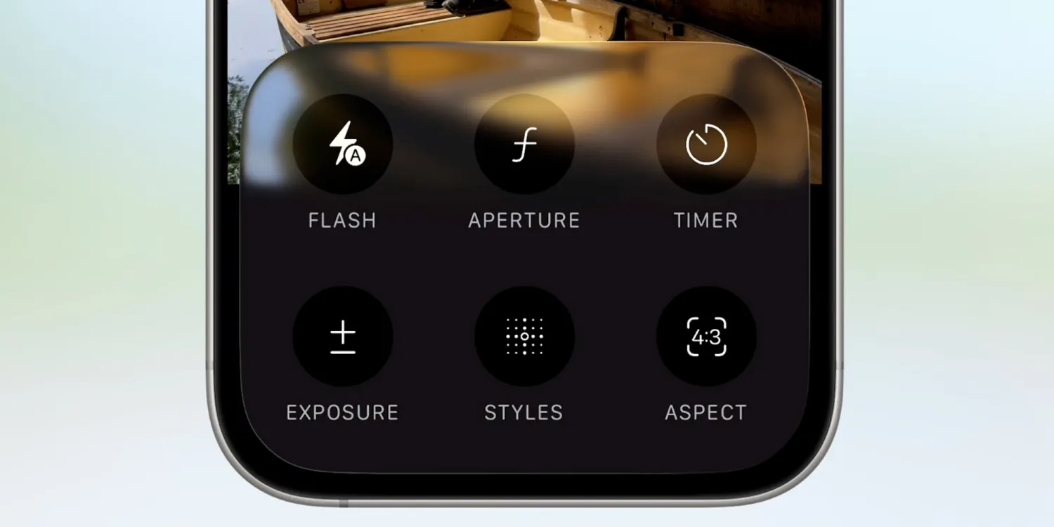 Los ajustes como la exposición, el temporizador y la apertura ahora son accesibles mediante un gesto de deslizamiento hacia arriba dentro del modo seleccionado. Los controles de resolución y velocidad de fotogramas se han movido a la parte superior de la pantalla, junto a los botones de flash y modo nocturno. Presionar y mantener estos íconos abrirá menús adicionales con configuraciones avanzadas.