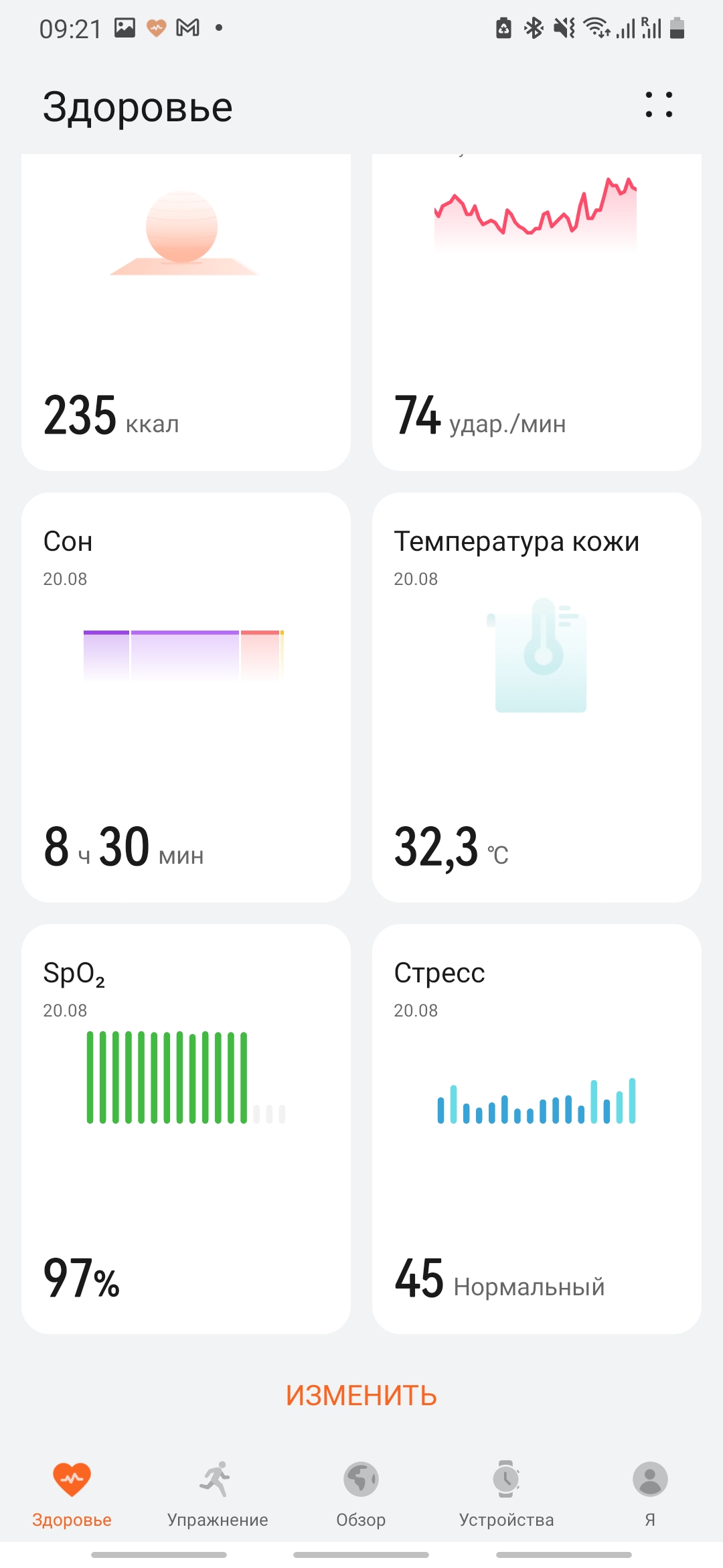 La interfaz de la aplicación es. Se ha actualizado significativamente, con nuevas características. Por cierto, por ahora sólo puedes conseguir la última versión con la que funciona el reloj desde la AppGallery.