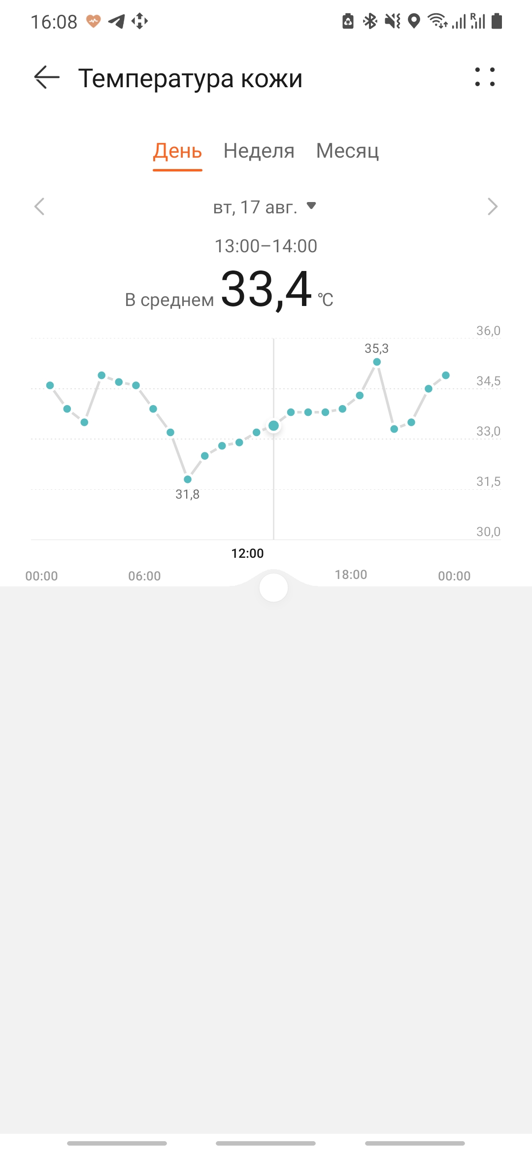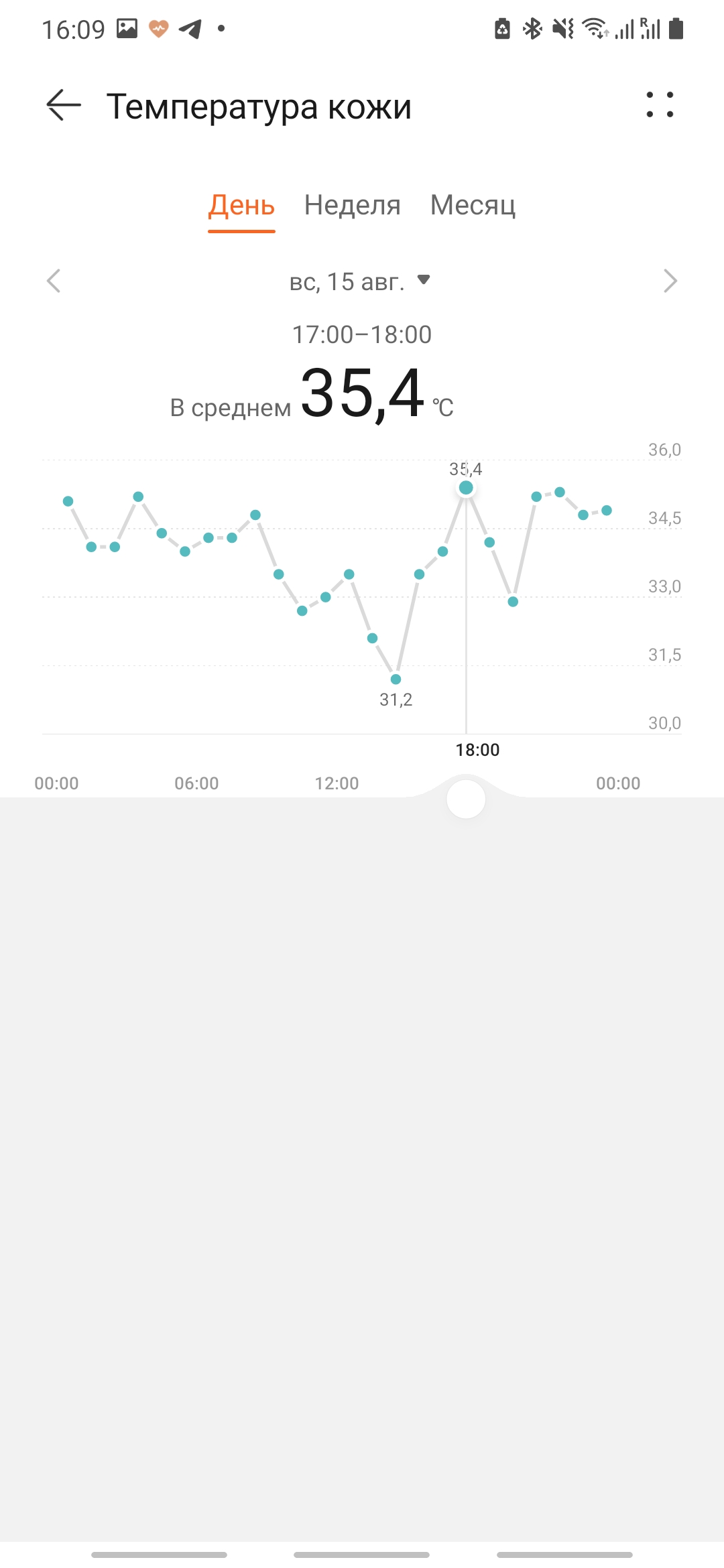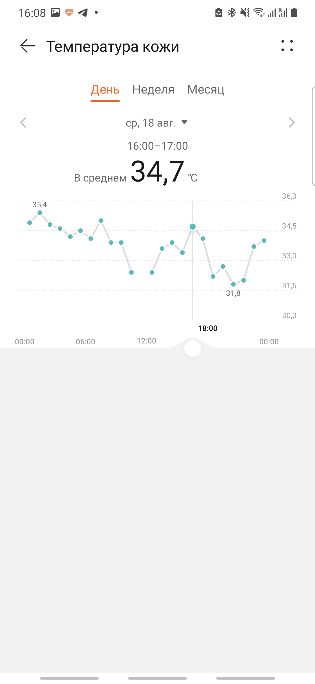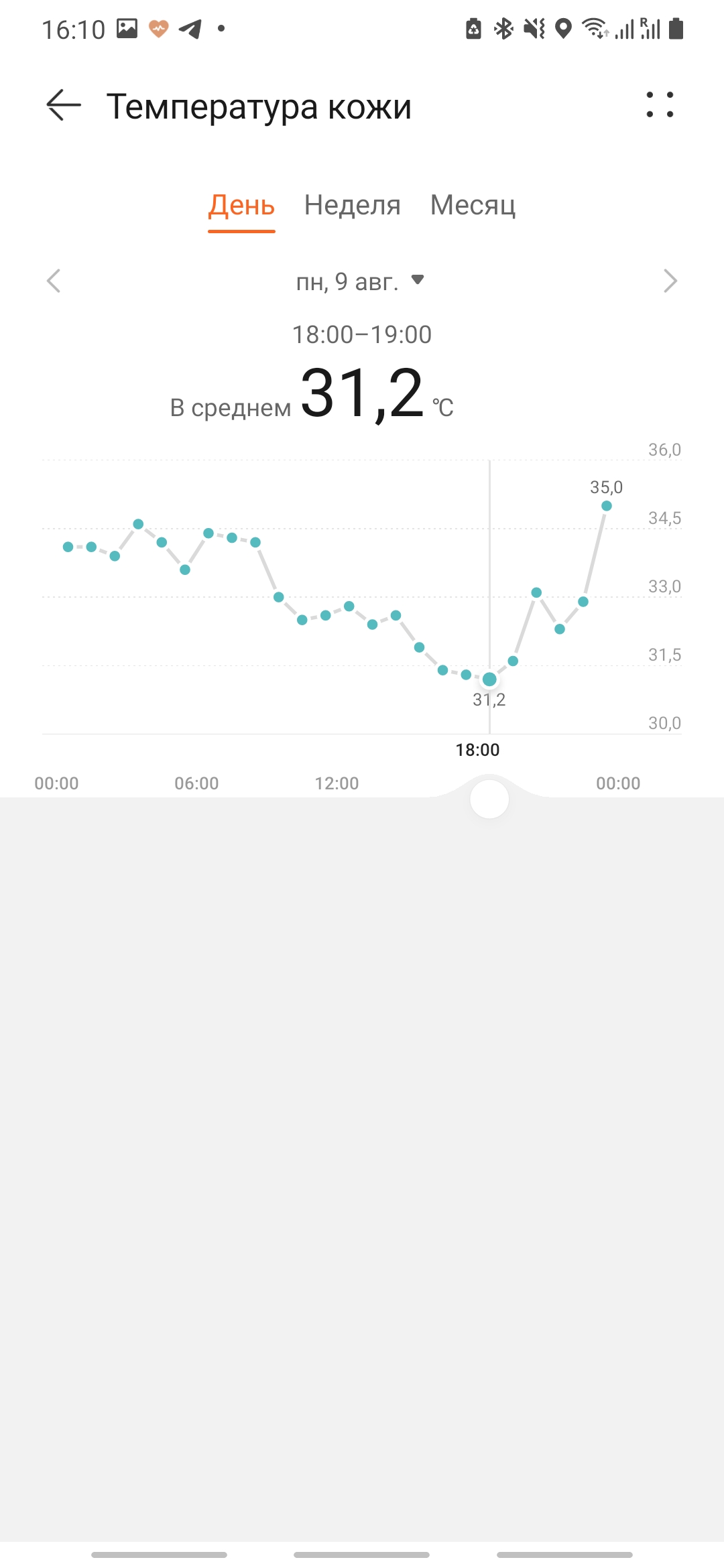 Hay otro hecho curioso del que se ha hablado sobre todo a raíz de la epidemia de coronavirus. La persona tiene una temperatura elevada por la noche durante unos días antes de que aparezcan los síntomas, ya que el cuerpo lucha contra el virus. Así que, en el proceso de probar el reloj, cogí una infección respiratoria aguda, pero mirando los gráficos, no hay manera de saberlo.