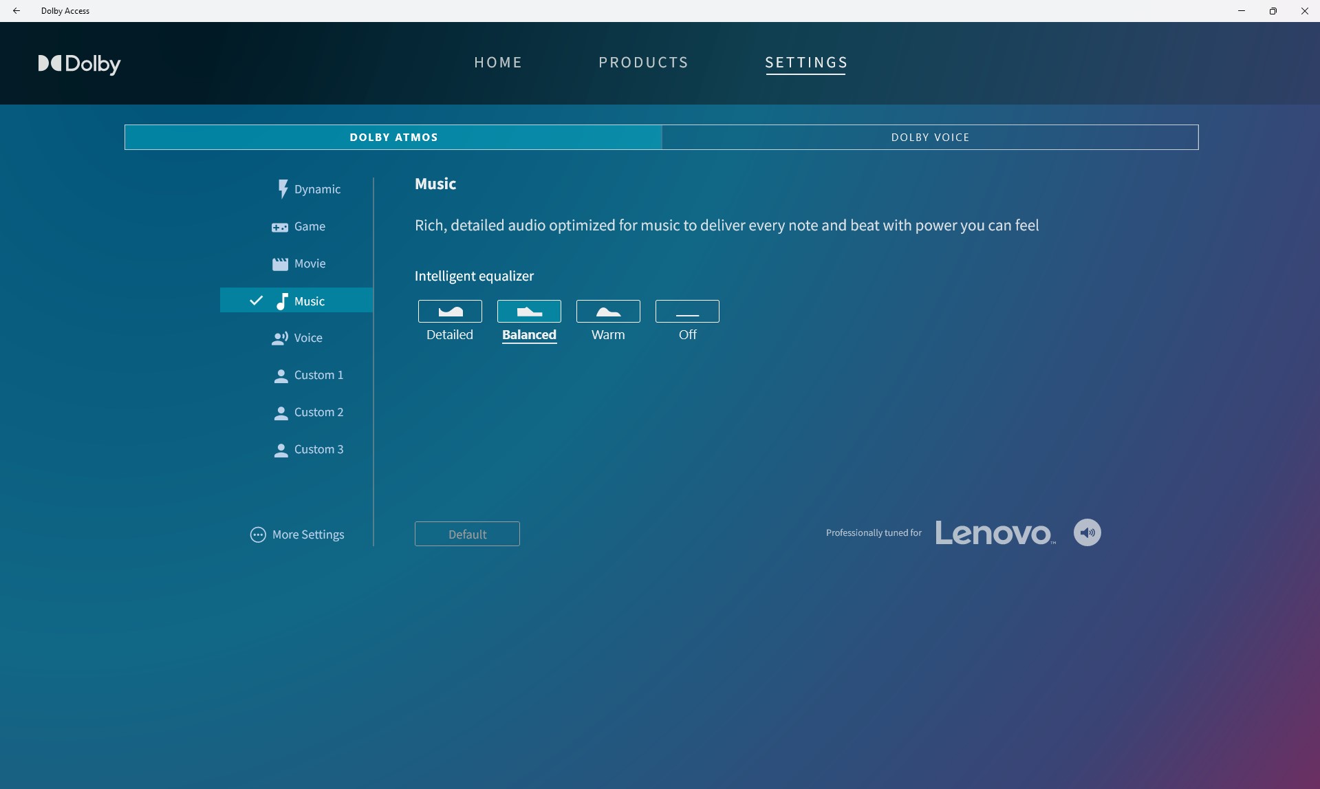 También hay una aplicación Dolby independiente para los ajustes de audio y micrófono: