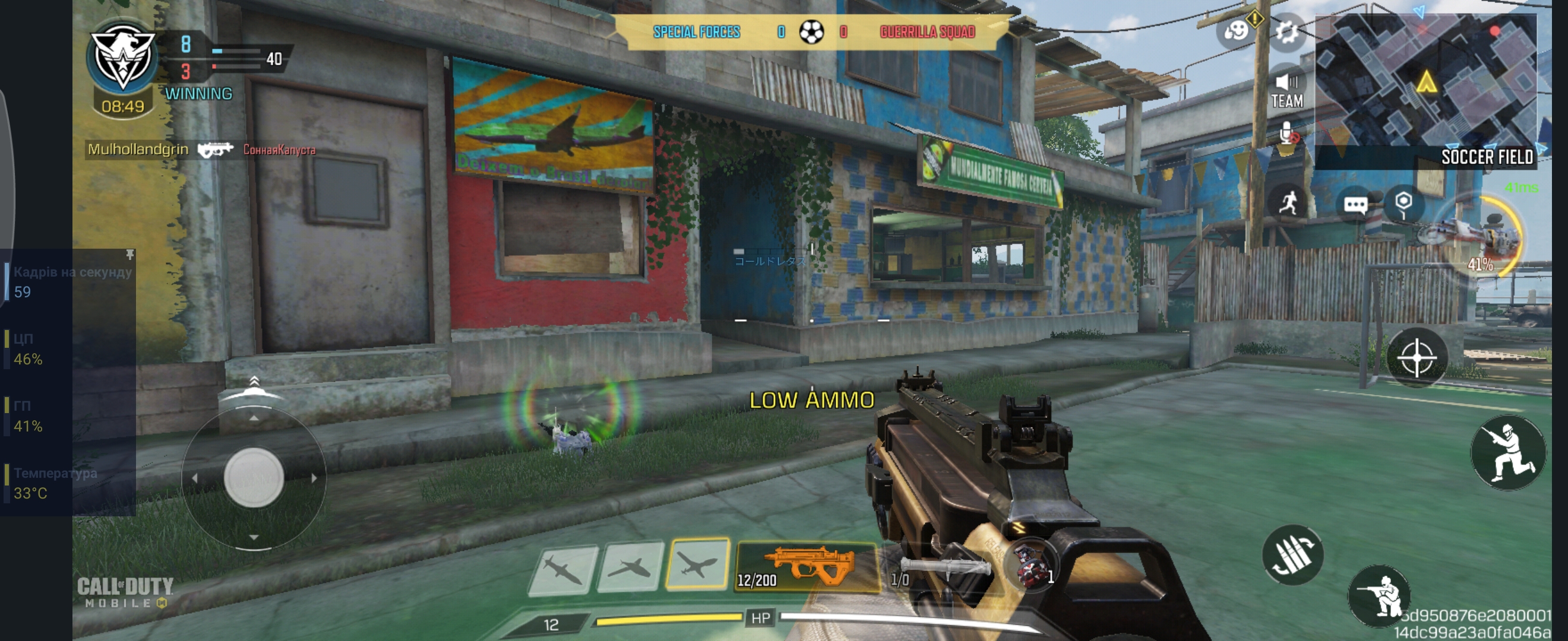 En condiciones reales, la carcasa se calienta ligeramente sólo en juegos exigentes y cuando se usa el smartphone como punto de acceso móvil. Aunque el rendimiento no baja, las aplicaciones funcionan con rapidez. Ya hemos hablado de la aplicación propietaria Game Center en muchos análisis de smartphones Samsung, no ha cambiado. El smartphone "tira" de juegos modernos sin problemas. Call of Duty Mobile en la configuración gráfica máxima funciona a 60 fotogramas por segundo, Genshin Impact - 50-60 FPS, Shadowgun Legends oscila entre 90-120 FPS.