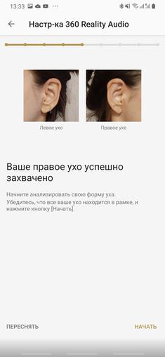 En mi opinión, la característica más cósmica de estos auriculares Sony es la reproducción de 360 Reality Audio. Para configurarlo, la aplicación solicita tomar una foto de los oídos del usuario y enviarla al servidor para su procesamiento. ¡Dicen que ajustan el sonido individualmente al oído del propietario de los auriculares! Un problema: la función solo funciona con las aplicaciones nugs.net y 360 de Deezer. Ambos tienen una suscripción paga. Así que no pudimos probarlo.