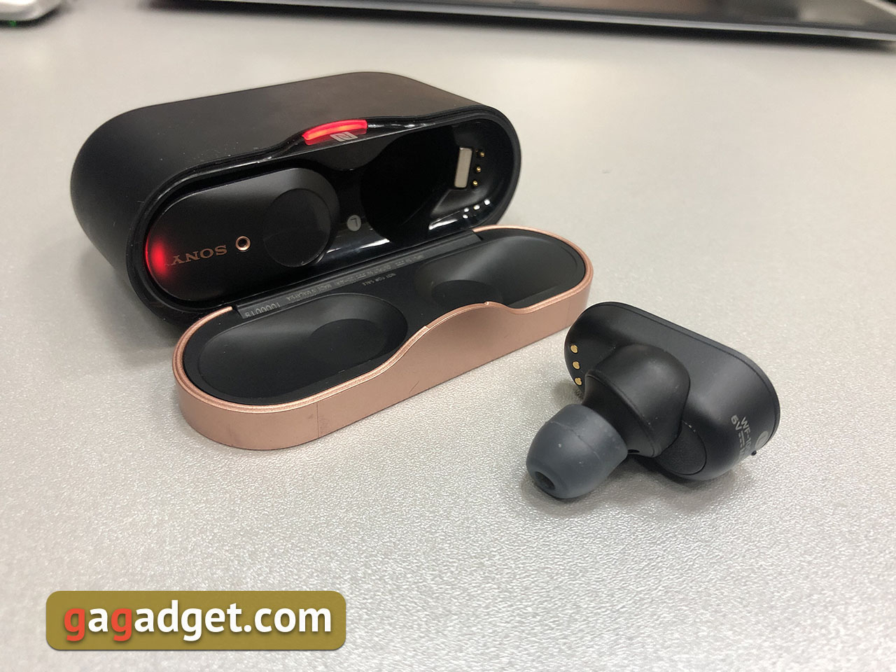 En el interior, los auriculares están conectados magnéticamente, por lo que incluso si abre la caja y le da la vuelta, no se caerán. Se abre con un agradable clic característico. Una de esas pequeñas cosas que te hacen sentir como si tuvieras un dispositivo sin presupuesto.