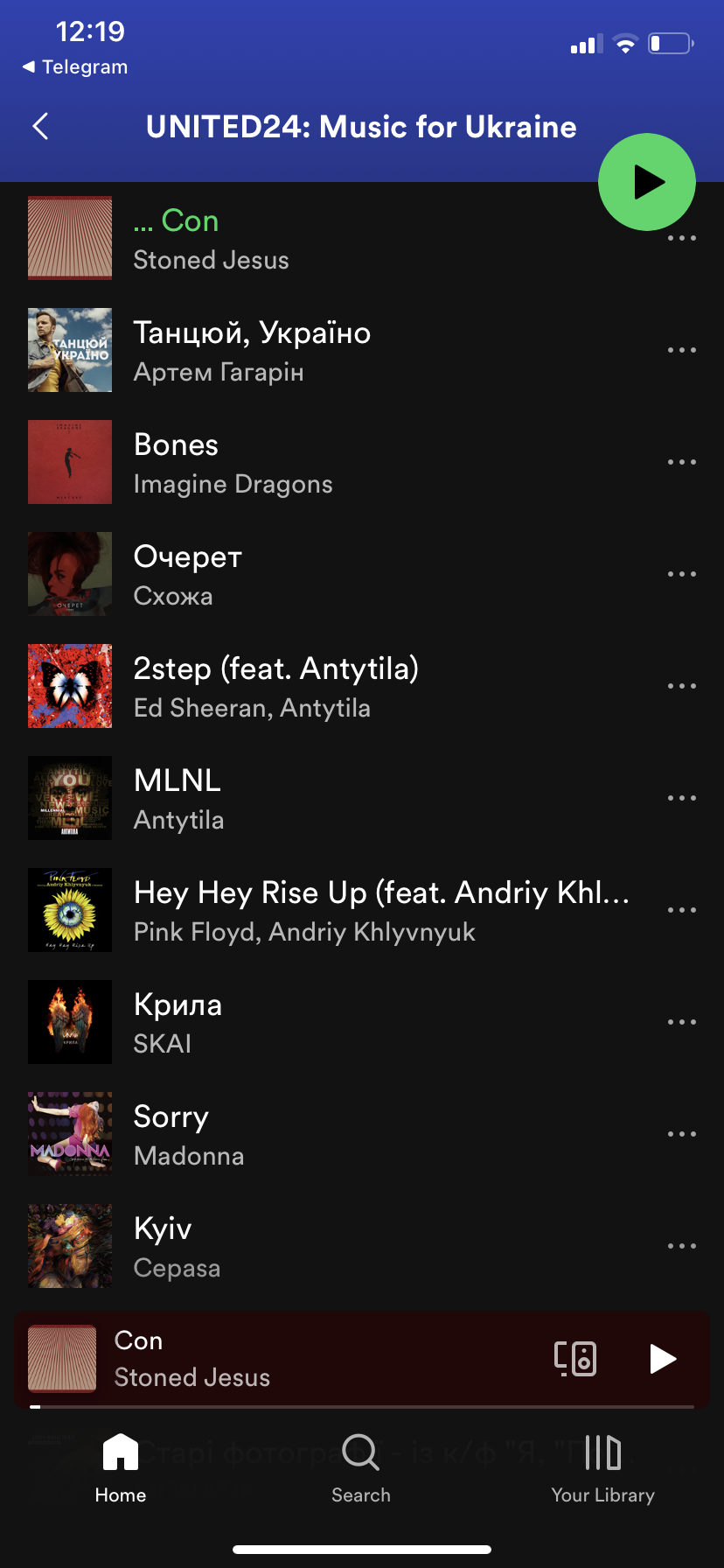 Los usuarios de Spotify no sólo pueden escuchar las canciones, sino también donar 24 dólares a UNITED24. El dinero se destinará a ayudar a los médicos ucranianos. Las canciones de la lista de reproducción se actualizan semanalmente.